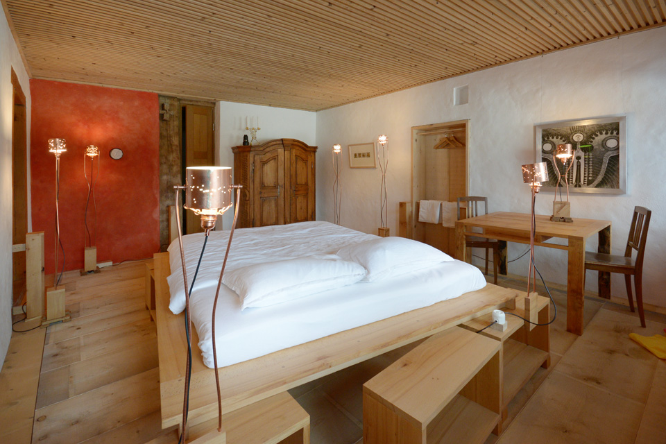 Les trois grandes chambres ont des lits en bois, des matelas en matériaux naturels, des draps en lin, des couvertures garnies de soie, des oreillers en duvet/plumes. Une table et des sièges. Une salle de bain privée avec douche et WC, (une avec baignoire), sèche-cheveux, serviettes diverses.