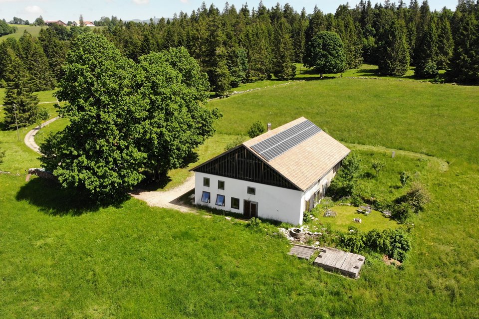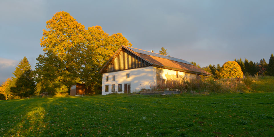 A l'extrémité ouest de Mont-Soleil, à 1166 mètres d'altitude, en direction du coucher du soleil, au milieu d'une grande prairie, dans un endroit très calme. Les transports publics les plus proches sont le téléphérique de Mont-Soleil (env. 50 min. à pied) ou la gare de Saint-Imier et Sonvilier, ou La Chaux-d'Abel et Les Breuleux. (Je peux venir vous chercher)