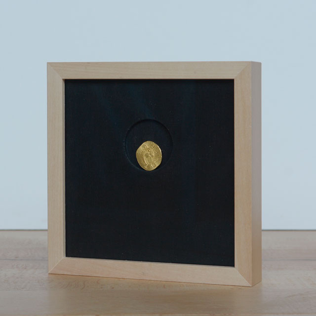 Die Goldradierung liegt lose in einer exzentrischen Vertiefung.