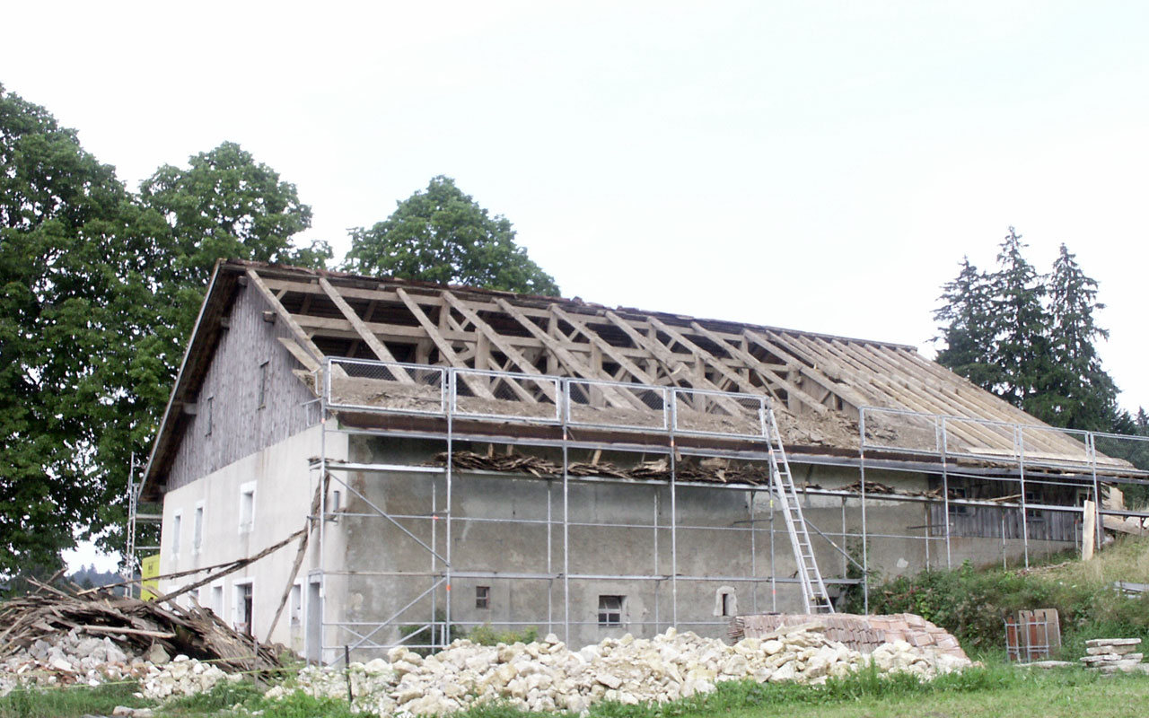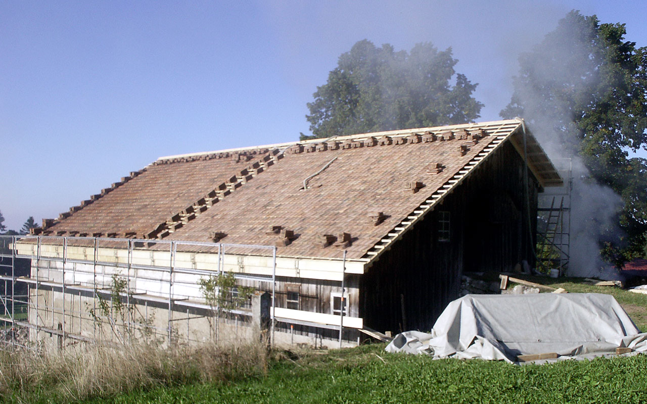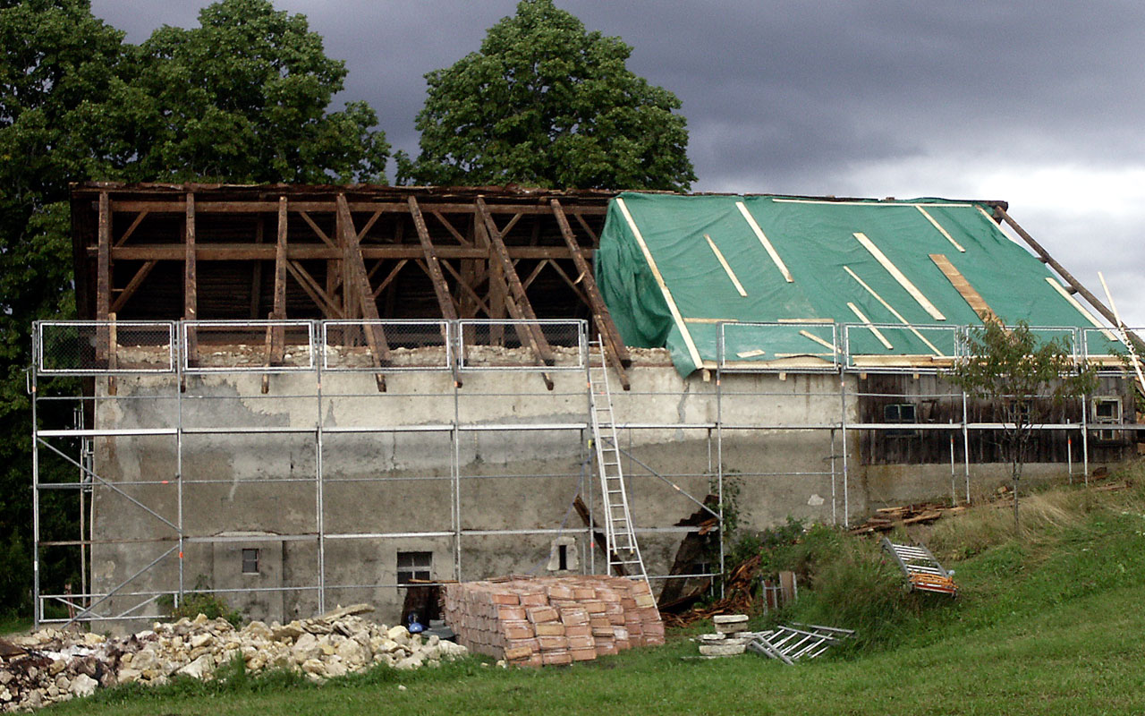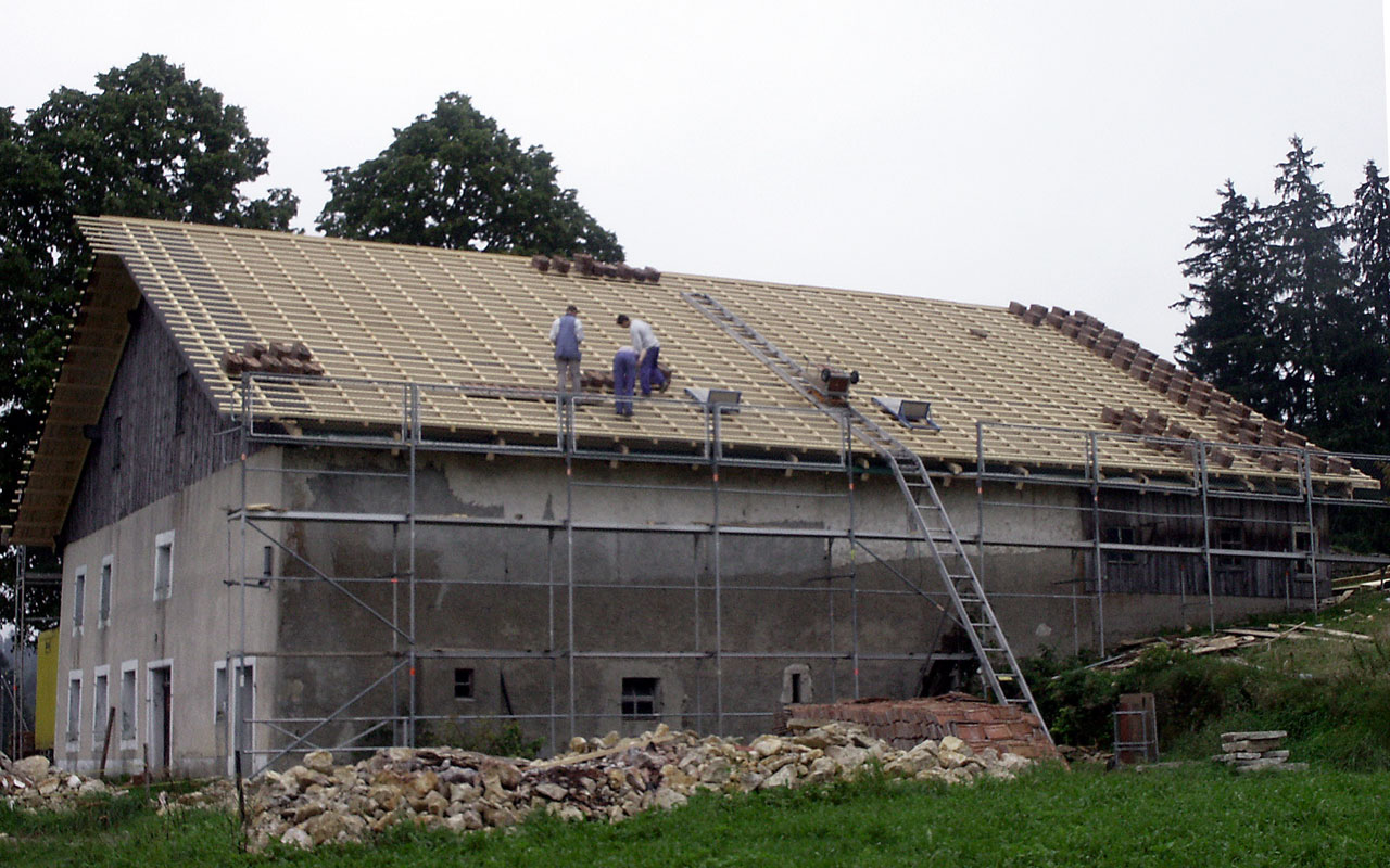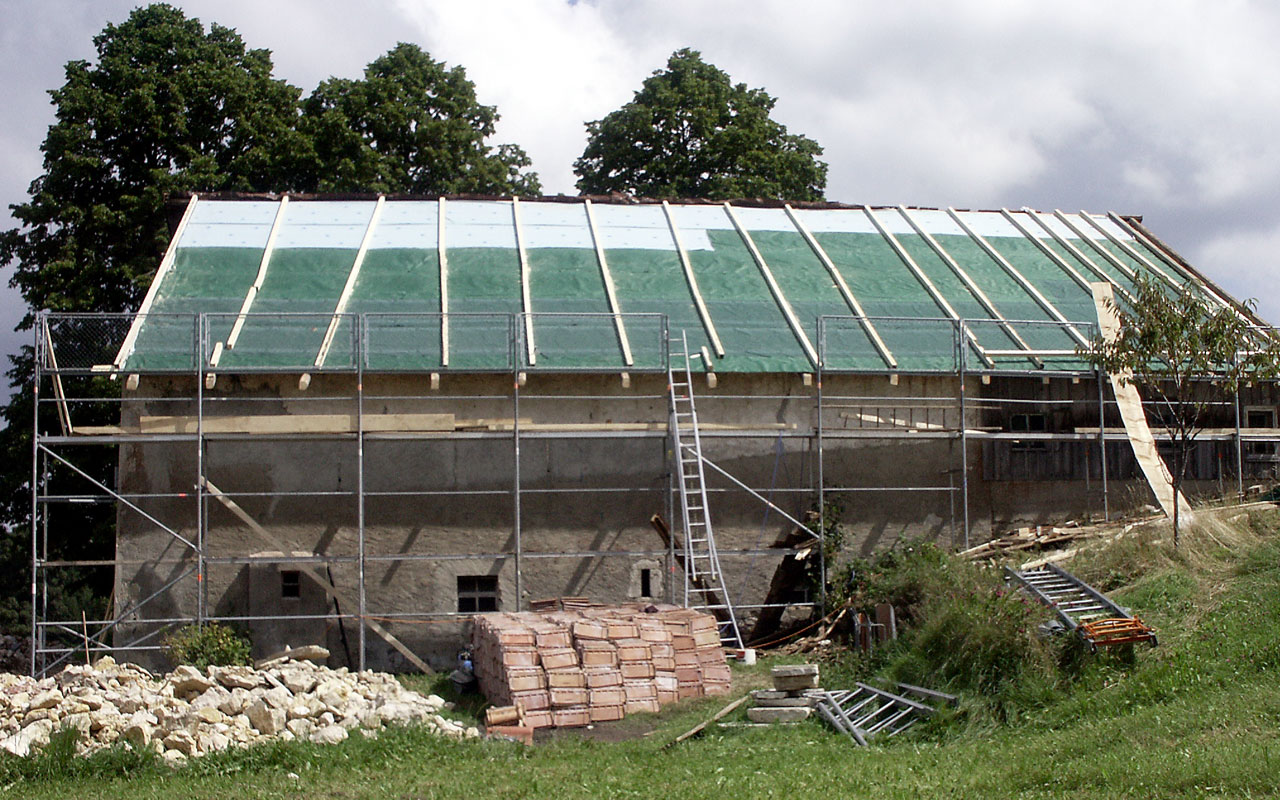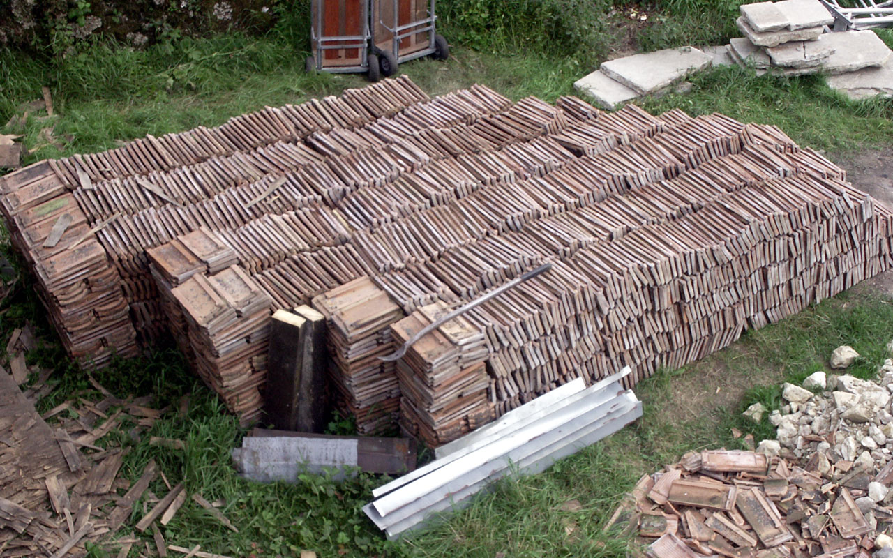 | 2002 Die alten Ziegel werden wieder af das Dach kommen! / Les vieilles tuile vont ètre remis sur le toit! |