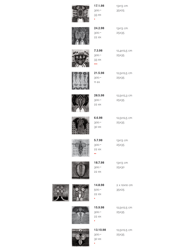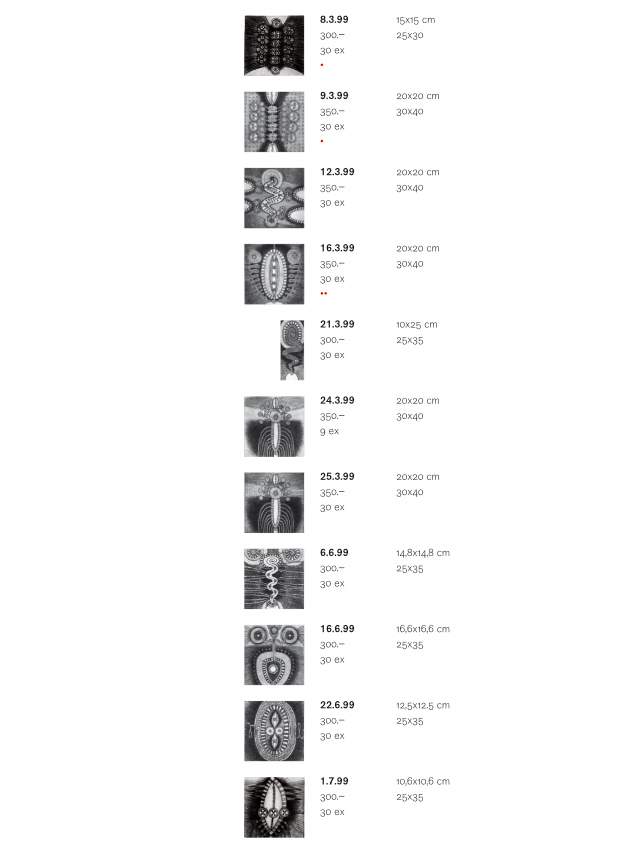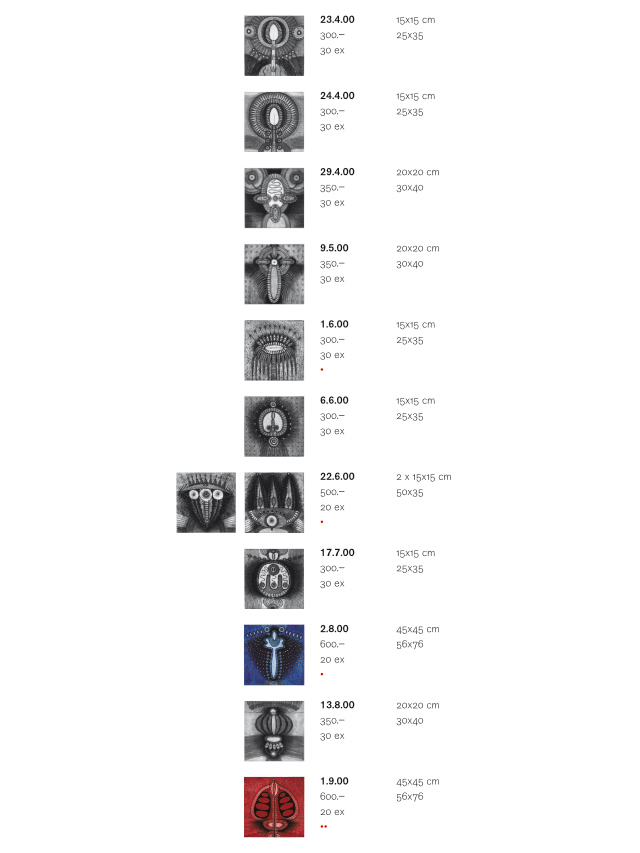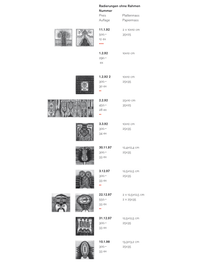 Preisliste Radierungen